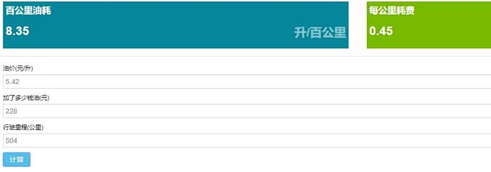 下载的油耗计算器,自动挡百公里油耗8.35升,目前里程为2200KM,还没有出磨合期,我平时都是在市区驾驶,堵车很严重,如果郊区或者不拥堵的情况下行驶油耗也就7个多油,这个油耗我是非常满意的。
