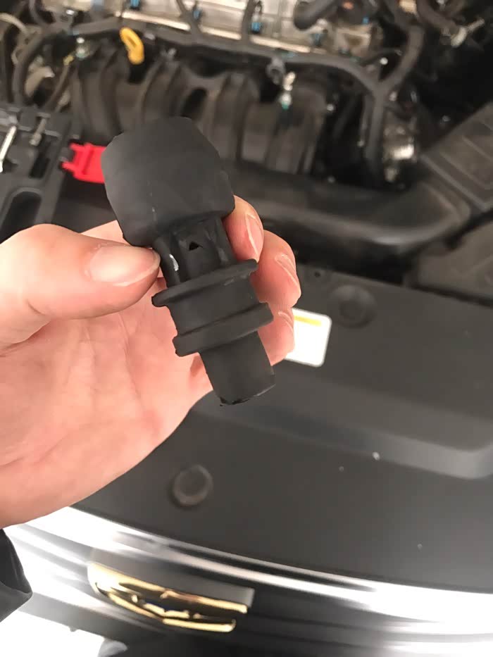 公布剪子的用处,这个是什么东西呢?哈哈哈,变速箱排气阀!因为出厂的排气孔比较小,东北天气冷的时候导致半轴油封漏油,借着清洗节气门的机会把它也一起弄了,剪子就是用来扩大排气孔的!嘿嘿