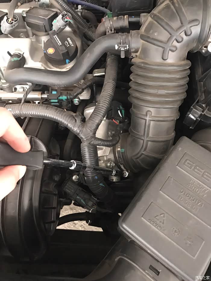 这个银光闪闪的就是节气门啦,一共三颗螺丝10mm,一颗螺柱10mm螺母,螺丝的位置