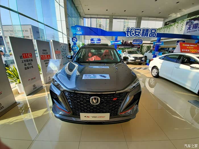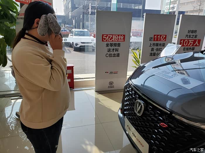 cs75plus摆放在展厅最显眼的位置,毕竟是颜值担当