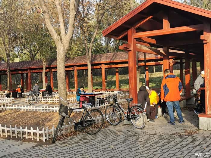 没想到这么冷的天来公园里遛弯儿的人还不少,来来往往地好不热闹。