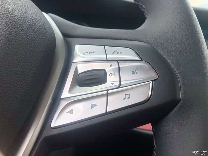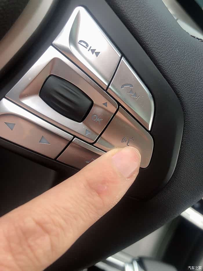 按一下多功能方向盘上的这个按键,就可以实现语音控制车辆