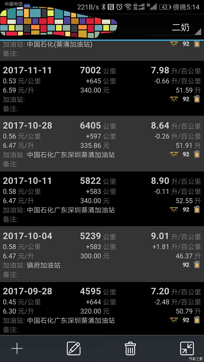 提车至今半年来的加油记录