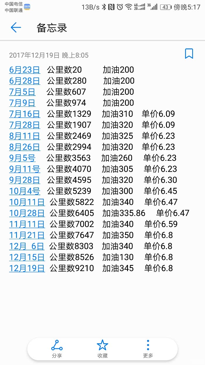 下面是本人备忘录记录+某油耗软件记录。