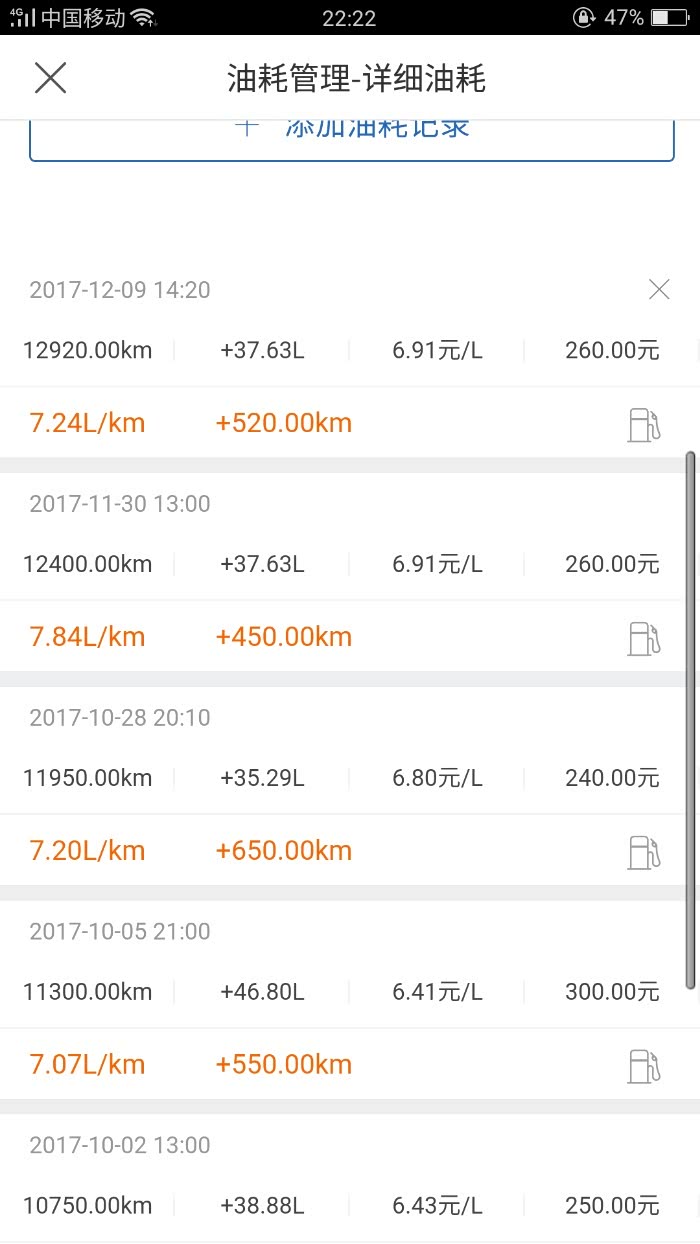 最近一段时间的加油记录
