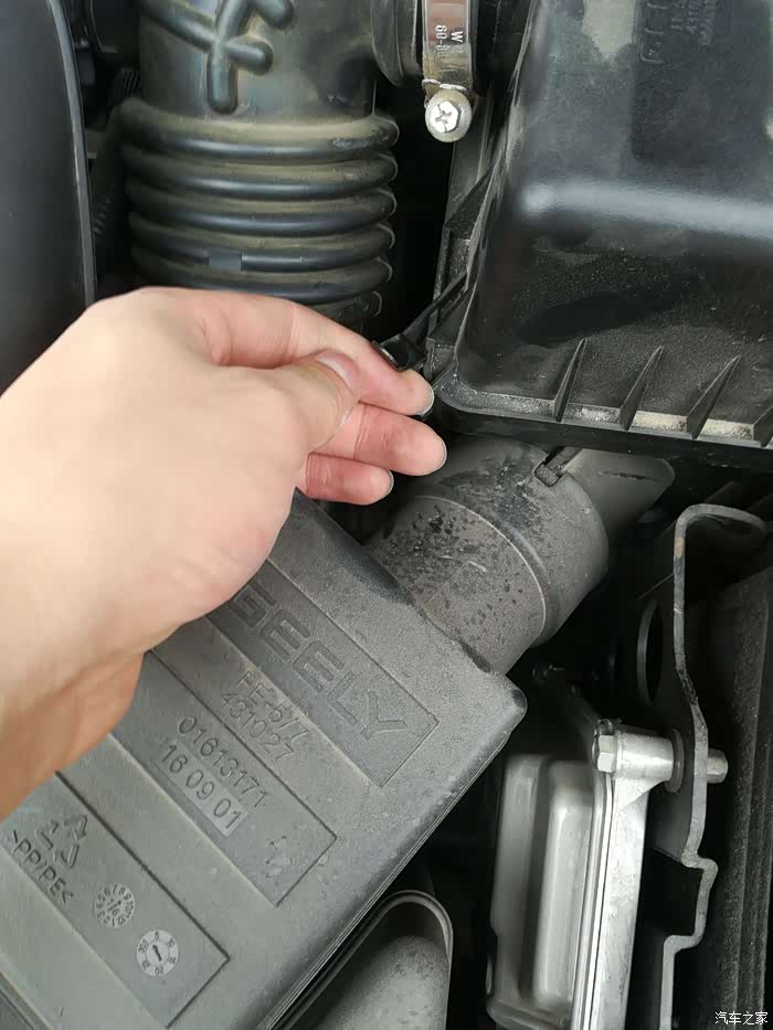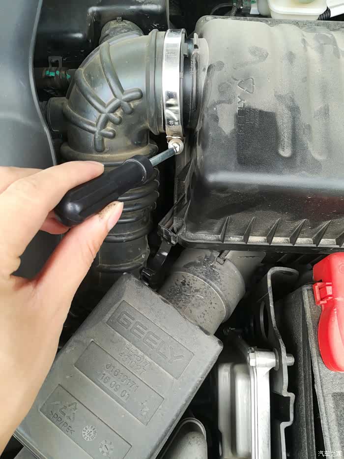 把螺丝拆松,空气过滤后通过这根管进入发动机)