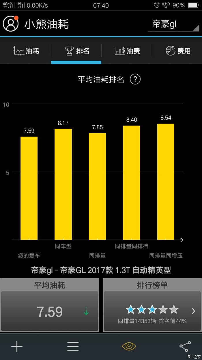 先说下个人使用油耗心得,提车至今平均油耗是7.59,下面图片会有。基本上所有路况都走过,大概高速中环和市区一半一半,油价涨涨跌跌平均油费每公里不到5毛钱,我对这个油耗还算比较满意。行驶过程中如果前面是红灯或者下坡就提前松油门,D档滑行,能很大程度上省了不少有钱,路况好的情况下ACC那油耗就降得更美了