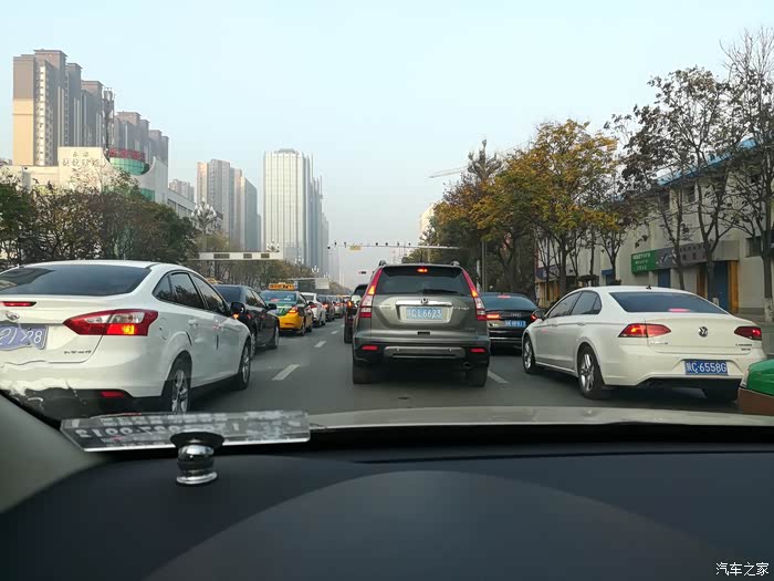 在这里,蔡蔡想要说的是,最怕遇到市区堵车情况,像这种。堵堵停停,停停走走,这是最费油的,也是最伤车,因为呢,车在怠速时间长的情况下最费油,还有一起步,也费油。这种路段,刚起步,又得给刹车。