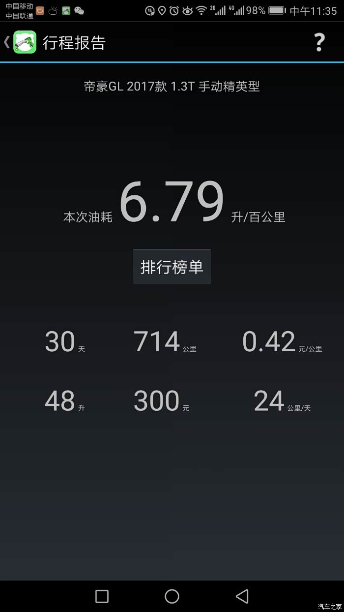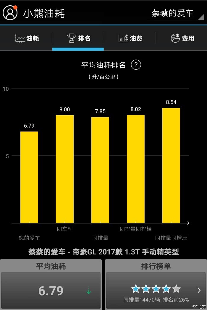 我的油耗和全国各地其它车主的油耗对比,总体我很满意GL,不管是它的外观内饰还是动力油耗,总能给我一种感触!