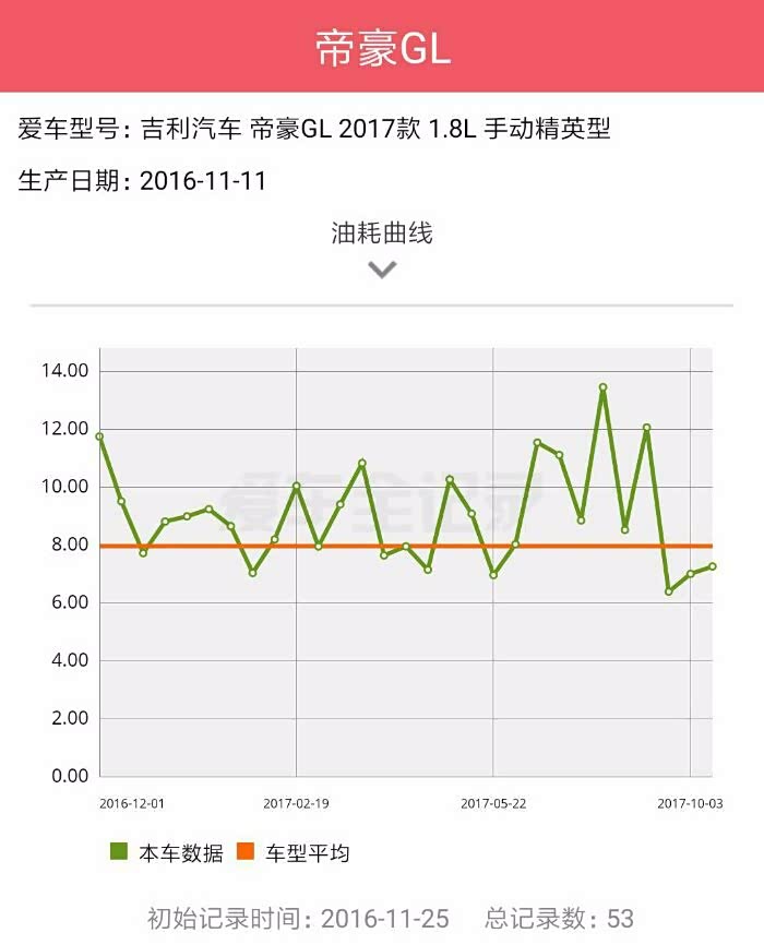 整个油耗曲线,基本上比较低的时候,都是可能跑了高速。比较高的时候是堵车很严重的时候。