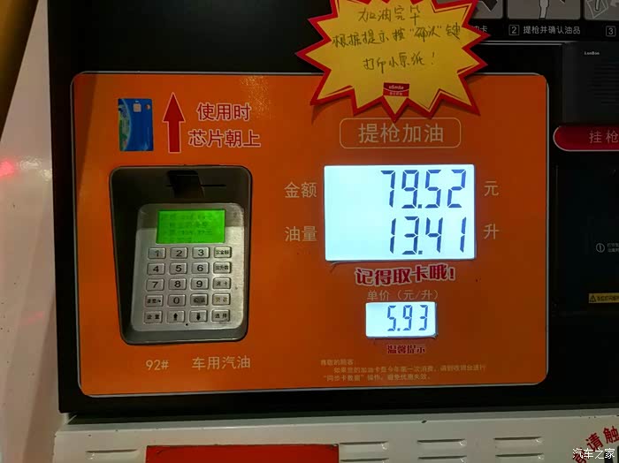 加油至跳枪13.41L,80块钱