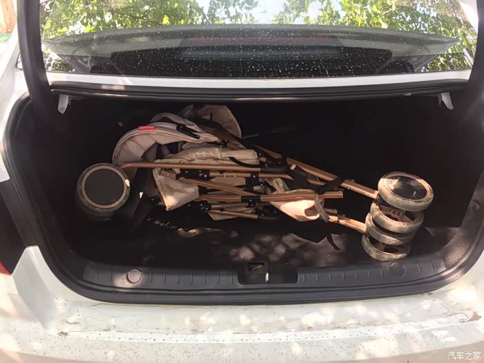 开口小但是胜在空间大。当了一个折叠婴儿车。里面还老大了