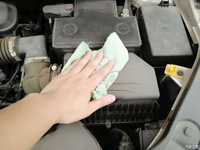 完事后顺便用毛巾把发动机舱简单清理了一下~
