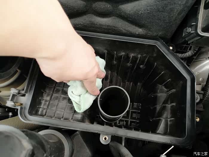 找到空气滤芯所在的位置,就是眼前这个盒子内。