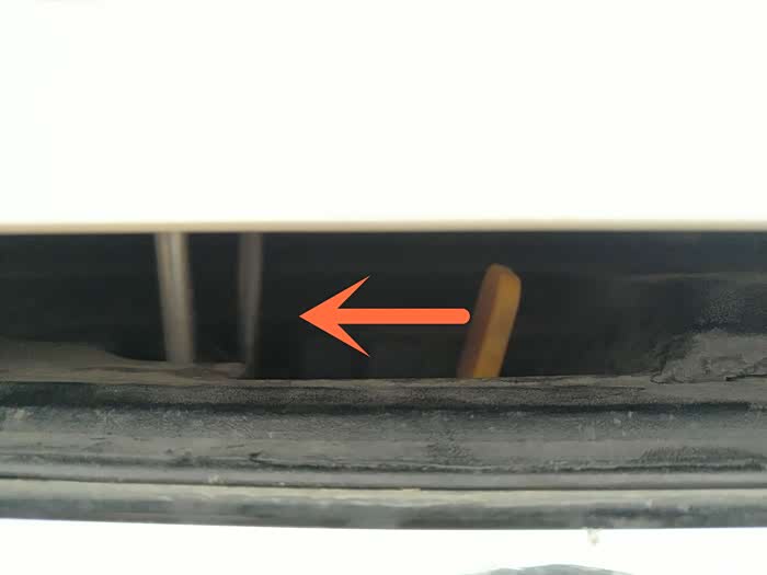 此时可见发动机仓盖弹开一个几公分的缝隙,现在是不能直接打开的,如图所示用手指向左拨动黄色的拨杆后方可顺利打开盖子。