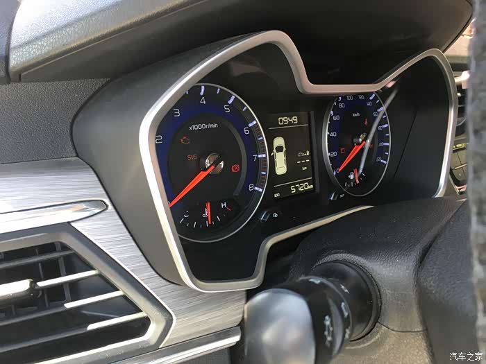 远景X3的仪表盘是双泡筒式的,造型还不错,淡蓝色的仪表盘背色也很梦幻