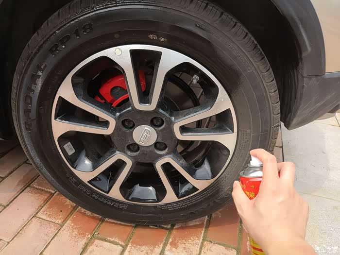 清理完小石子后接下来对轮胎表面也做一些常规保养,随着日常的使用轮胎长期雨林和暴晒势必会降低轮胎的使用寿命,通过在网上科普,选择了一款轮胎釉自喷型的。通过科普喷上后不仅可以增加光泽度,还能减少腐蚀、耐腐蚀、防水,用法很简单摇一摇就可以了,也算是为轮胎穿上一层罩衣吧。
