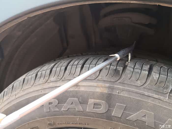 这个办法可以解决部分的石子,也是相对比较简单的,就是我们直接把车轮胎放气,气一放,这石头全部都会掉下来的,就像我们毛毯一样的,拍两下,全部掉下来了然后再把气打打满就可以了,石子较多的可以采用这种办法。