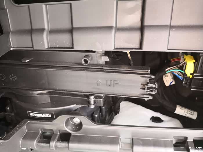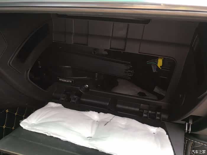 拆掉固定的三个塑料扣子后手扶箱便能去掉了,打开后映入眼帘的是白的隔音棉,这么小的车,几万块的小车在 这个地方用到白的隔音棉,感觉还是挺贴心的,哈。