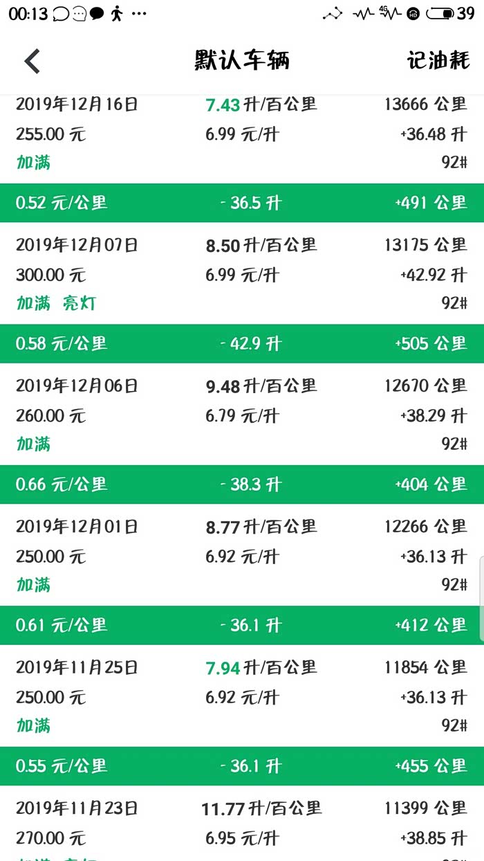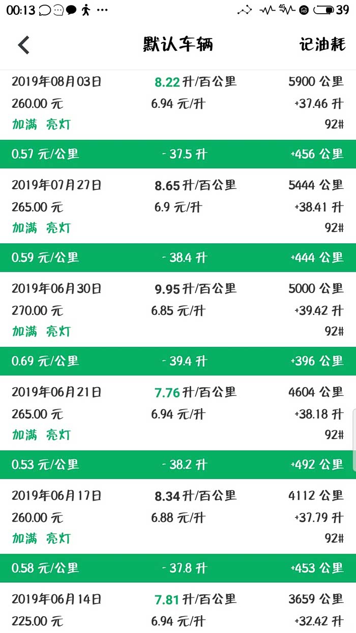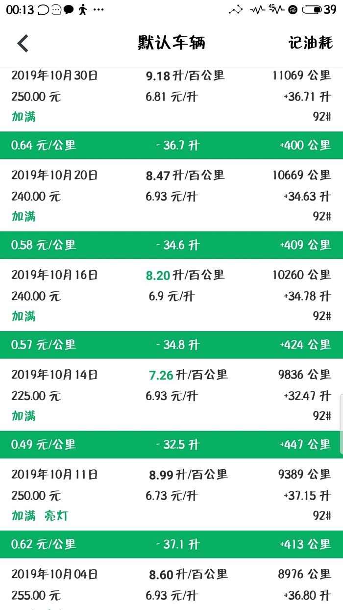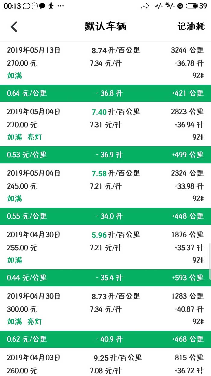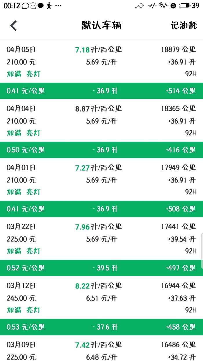 下面是我的缤越每次加油的记录