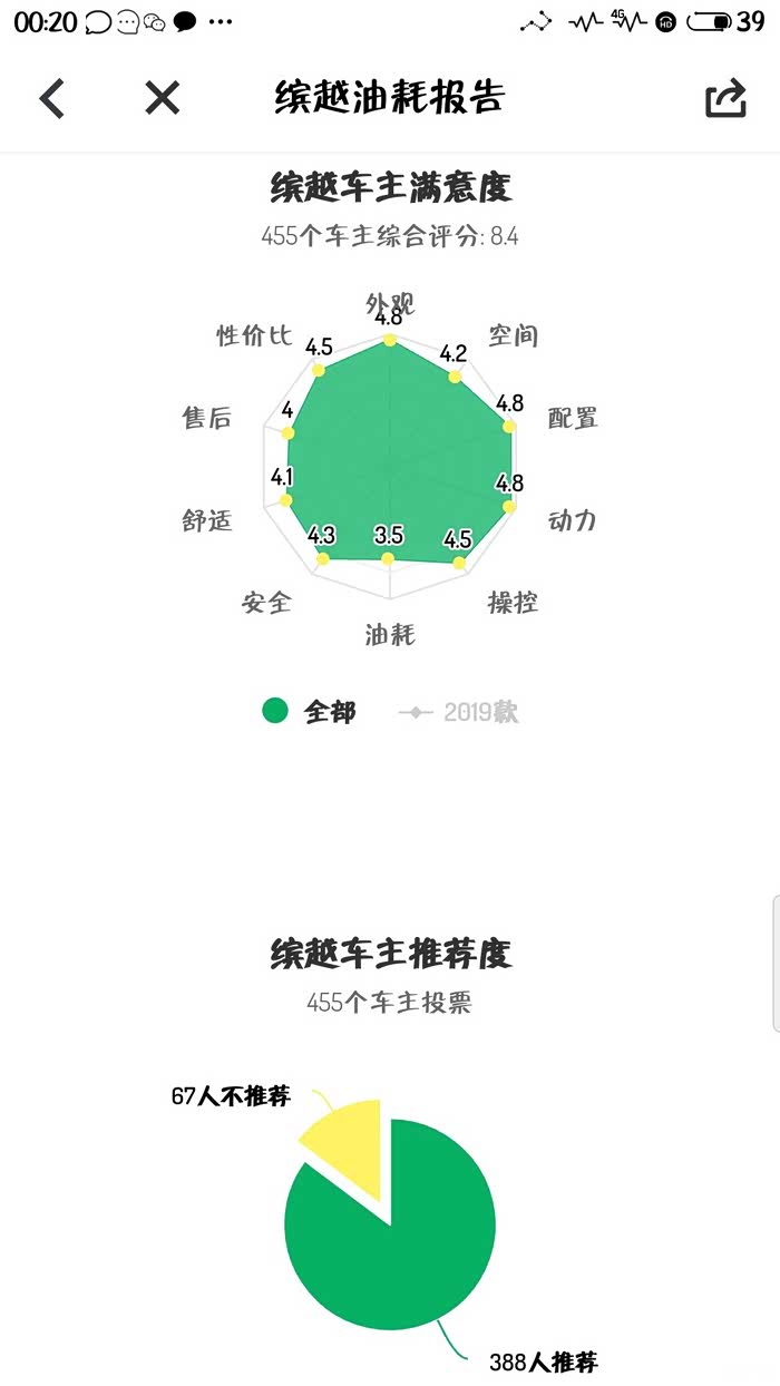 这是缤越车主满意度,总分10分,缤越拿到8.4的高分