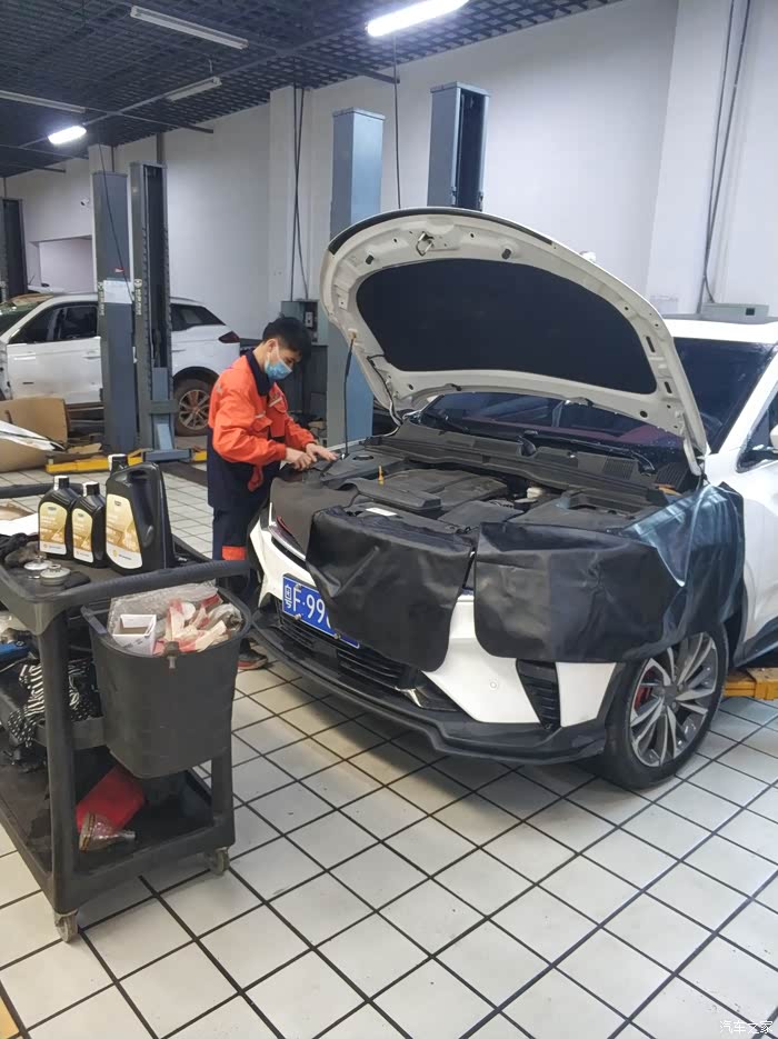 保养快完成了,贴心的小哥还给小白做室内消毒。灰常感谢吉利的贴心服务!疫情时期,免费更换N95等级的空调滤芯,免费做室内消毒!感谢!
