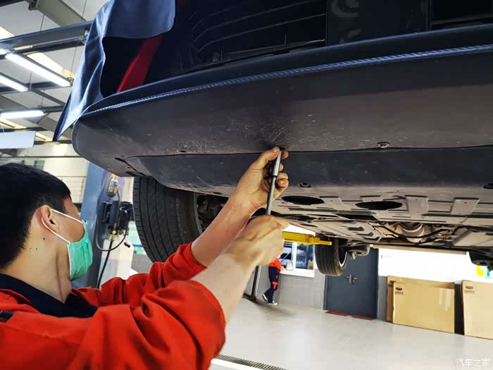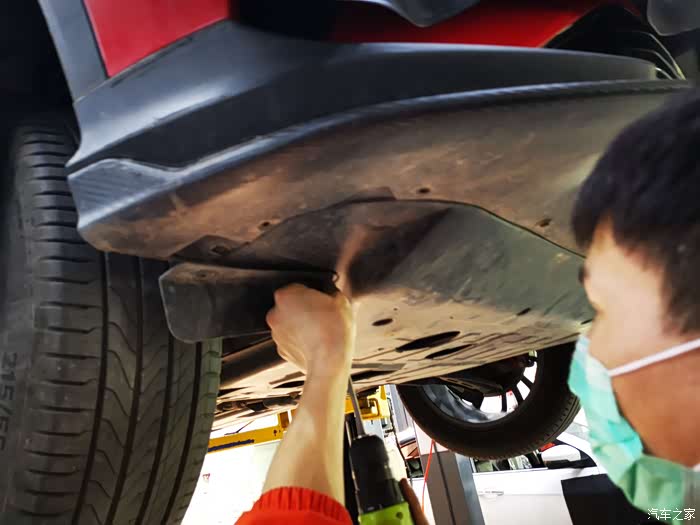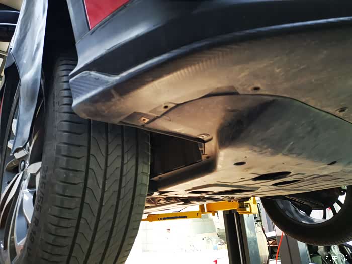检查下底盘,塑料覆盖件有刮蹭的痕迹,但是不影响。