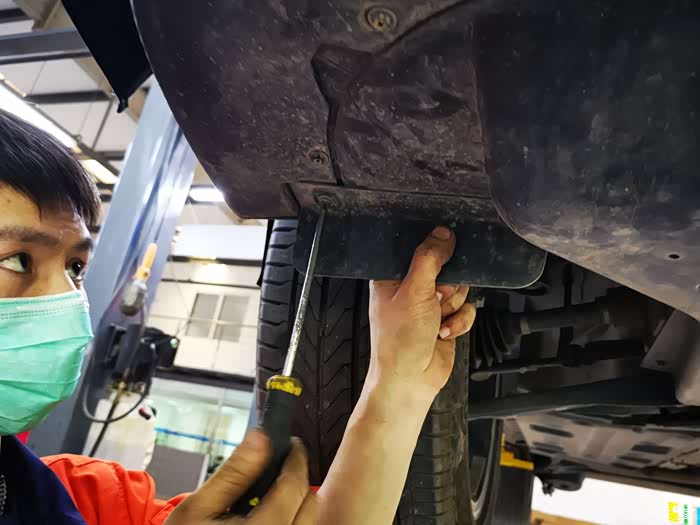 先拆下前轮的挡泥板,然后开始发动机保护板!