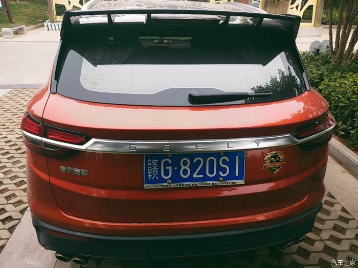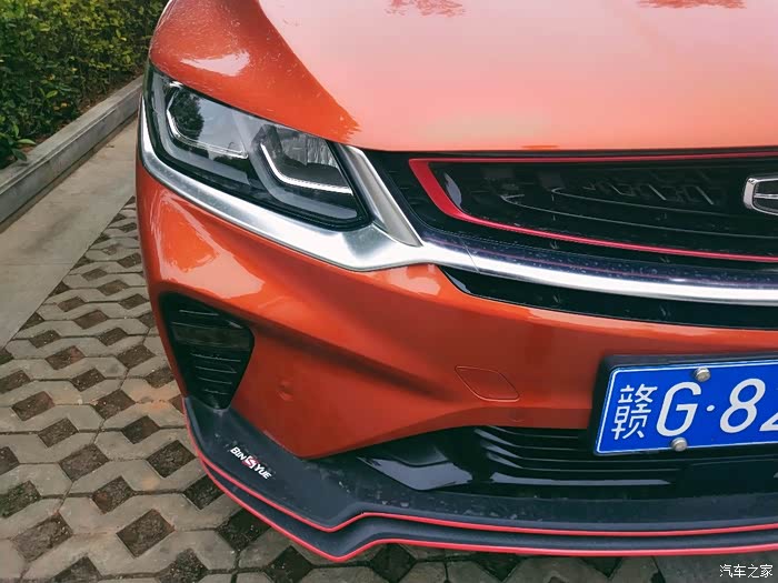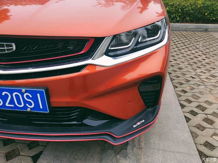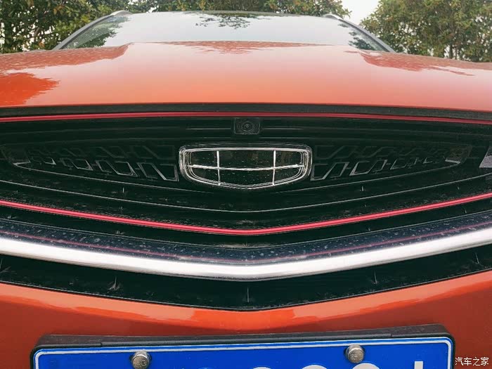 吉利黑标特写,再往上是前置摄像头,缤越可是自带行车记录仪的,省去了自己安装行车记录仪还要破线的事