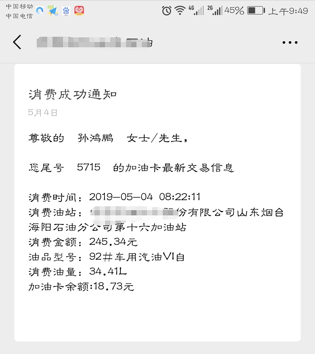 上一次加油在5月4号,加油站打码了,避嫌。由于最近在外出差一段时间,所以没怎么开车,一直再没去加油。