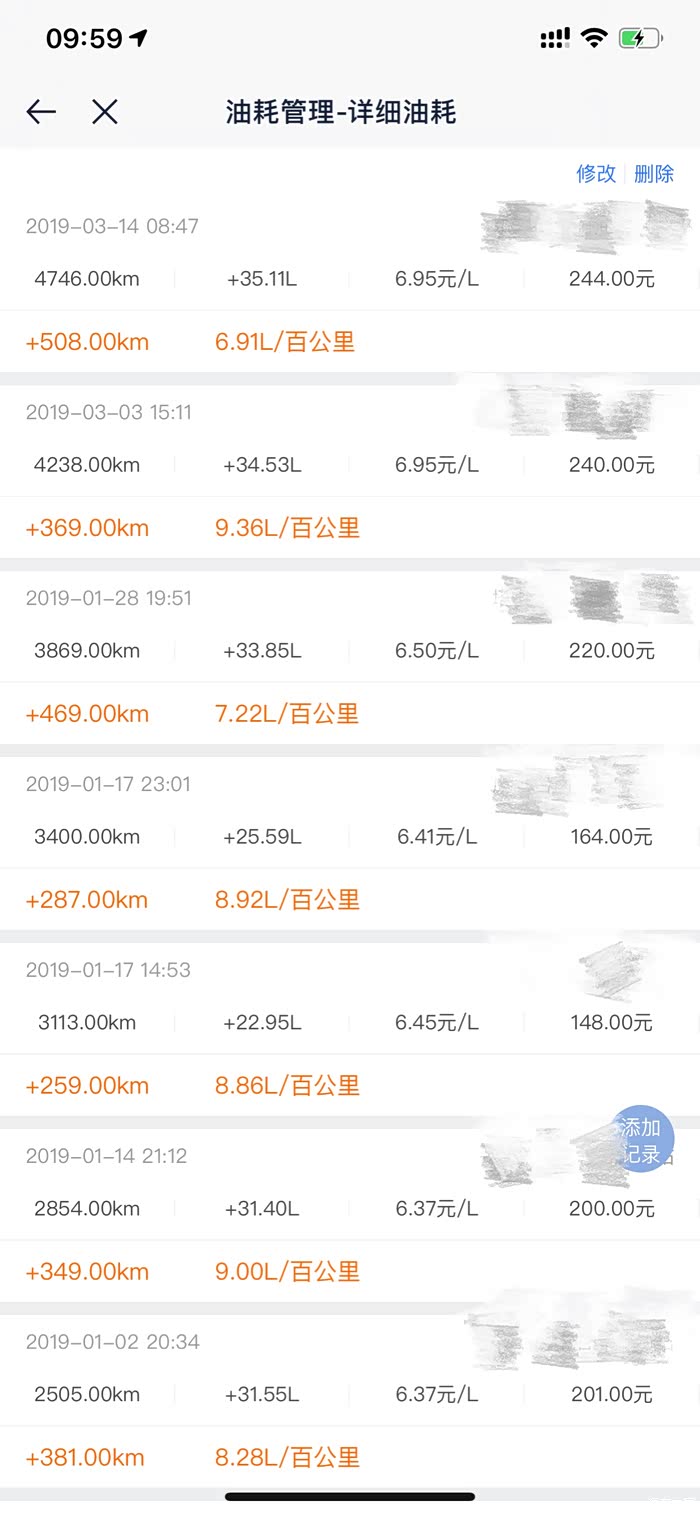 这是目前为止加油的数据。综合已经掉到8.5升百公里了。