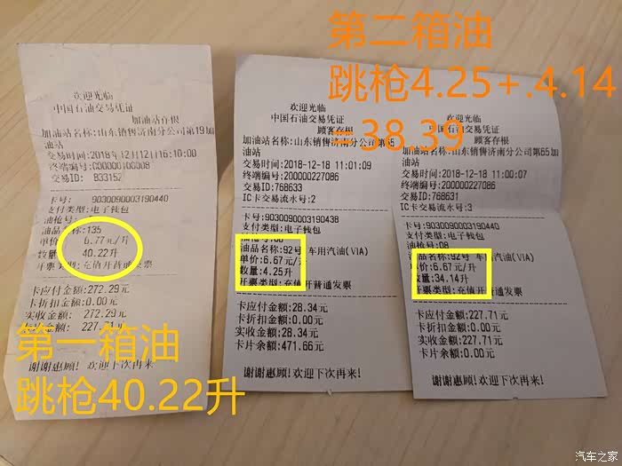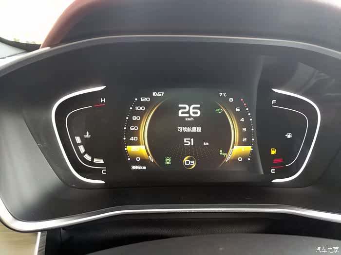 第一箱油 共计跑了386公里减去加油前的10公里加上第二次加油前显示的续航里程51公里实际为427公里 去零按420公里(因为第二次加油的时候只加了38升中间还有2升的余量)算出来的大约油耗约为百公里9.6升