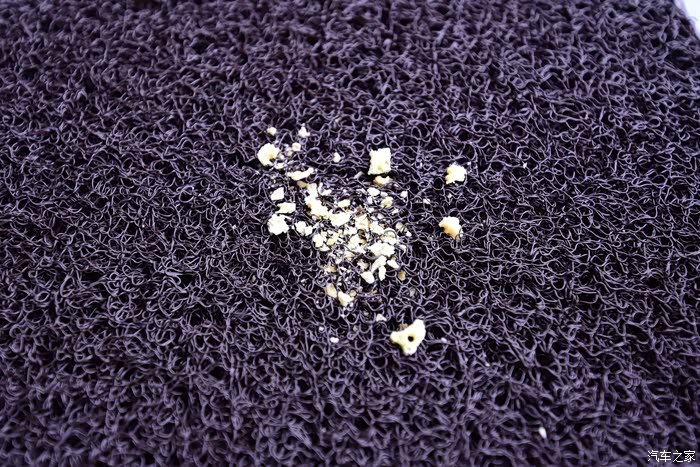 这是测试的尘土屑。接下来,拿上车安装检视一下脚垫与车子的是配性,脚垫除了可以保持车内的清洁,不会直接弄脏原地毯之外,也增添了车内的装饰感,当然,决不能影响到我们的驾驶安全。