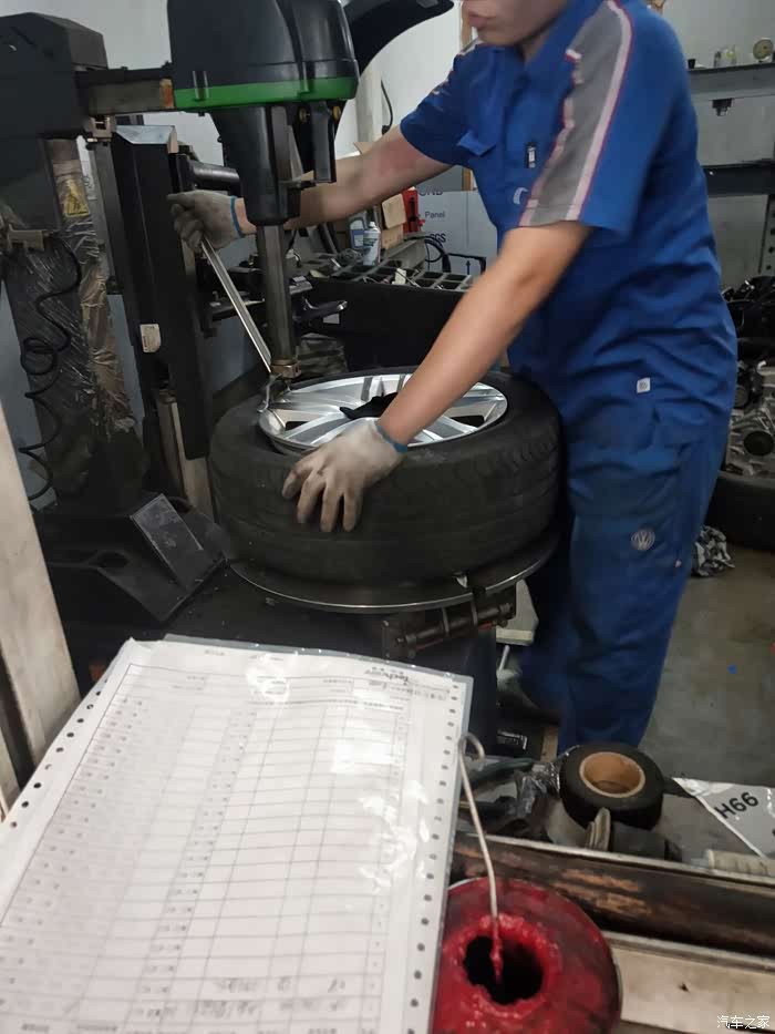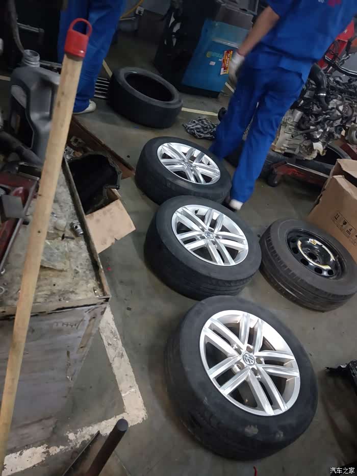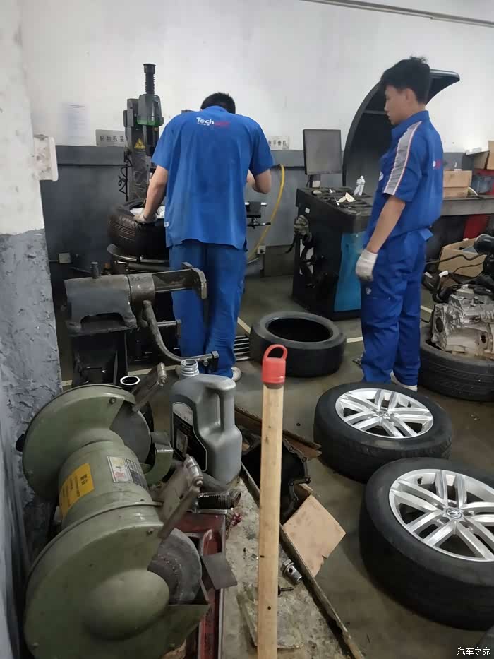 师傅们开始拆卸轮胎,用了四年的轮胎,突然有点舍不得了。