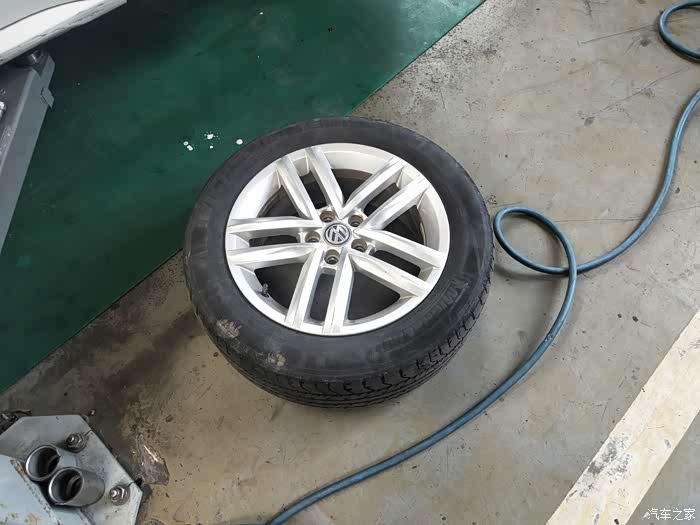装上新的轮胎,上螺丝的时候师傅没有用风炮锁紧,而是用扭力扳手。用扭力扳手锁螺丝的好处就是可以保证每个螺丝锁的一样紧,使其受力平衡。