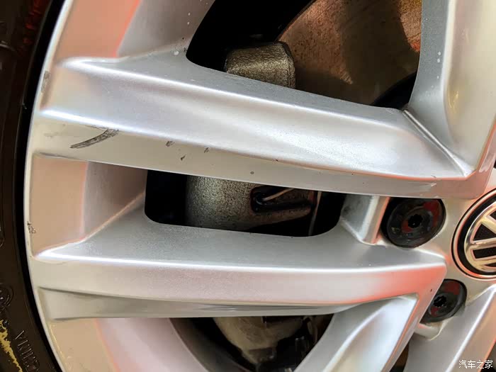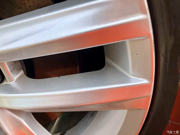 磨下来的粉,都粘在上面了,虽然中间在售后洗过一两次,但是他们不会给你清洗轮毂的呀,只是用水冲洗一下。