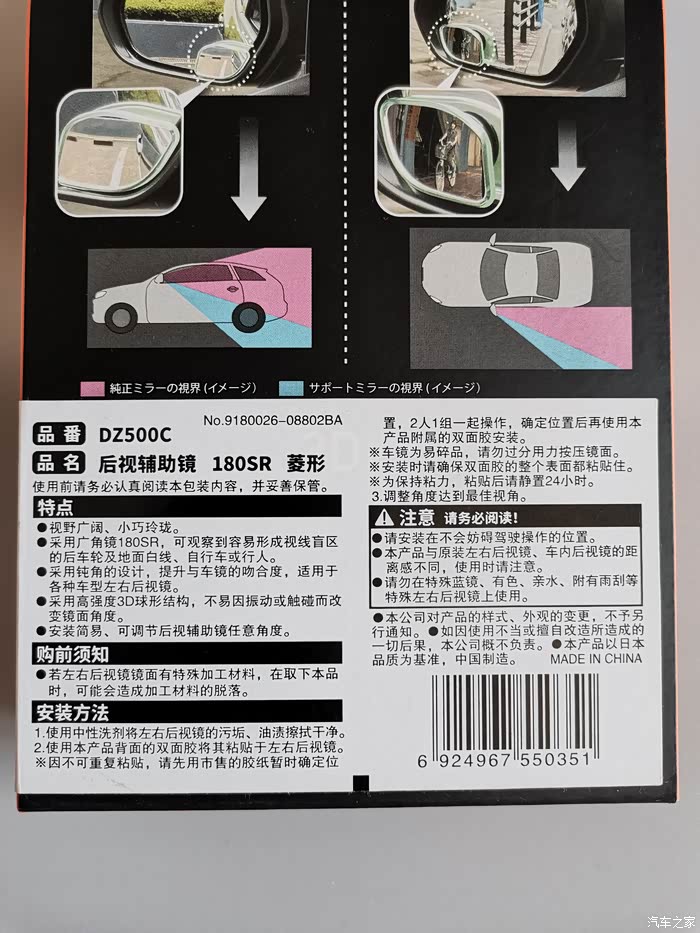 首先普及一下这种小圆镜的用处,开车的人都知道,看后视镜会产生盲区,盲区是一个很可怕的东西,事小可能造成财产损失,事大则会伤及人命,小圆镜的加装能让驾驶员坐在车里更好的观察车身侧面、后轮的情况,如果盲区内有车过来可以及时发现,变道扭头一看,后面的车轮都清清楚楚的,减少事故的隐患。