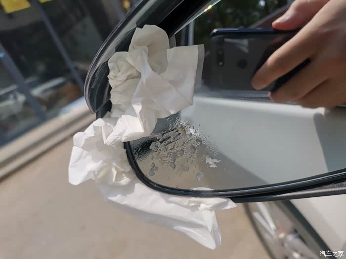 粘上,调整好角度,完活!成像也非常接近了,仔细看左边能看见灰色车的一个小边,后视镜看不见,这个范围已经足以了,我旁边车位没车的,这个边是第三个车位的车