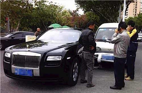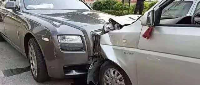 一辆劳斯莱斯SUV与一辆长安面包车相撞