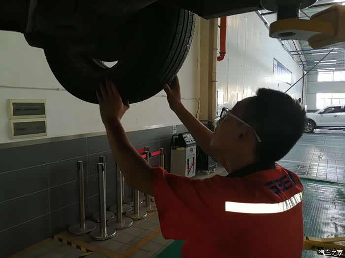 师傅开始检查气压和轮胎有没有鼓包