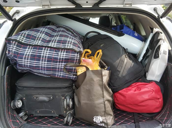 后备箱装装得慢慢的,外加五个大人一个小孩