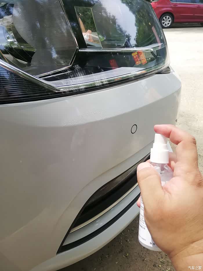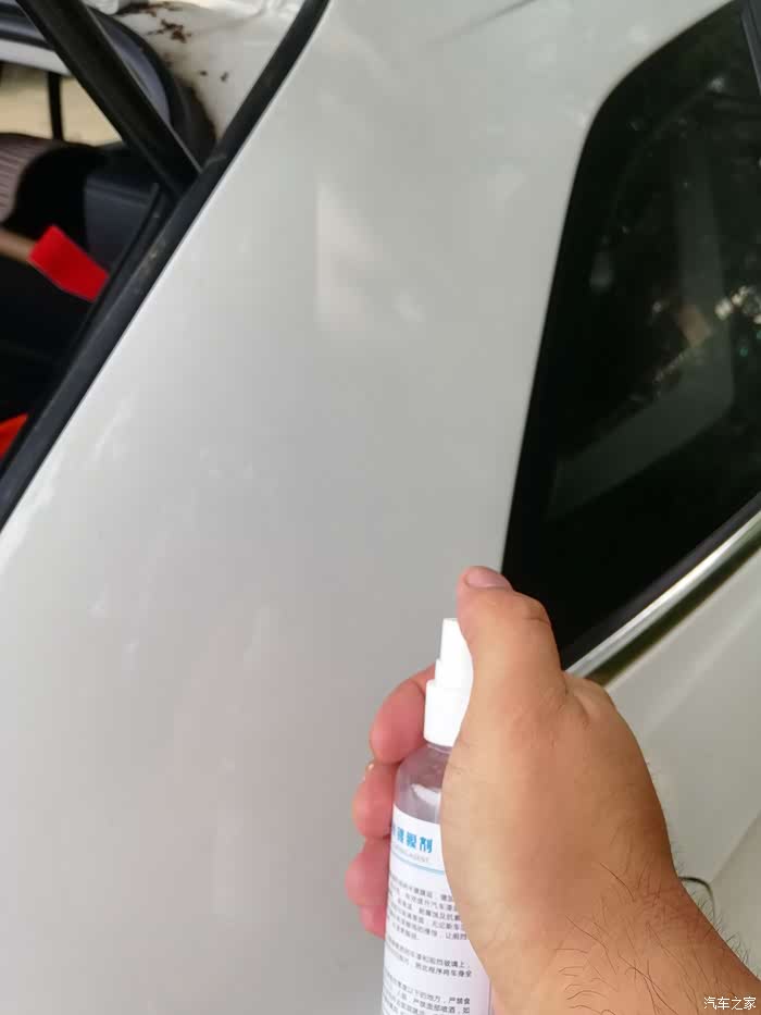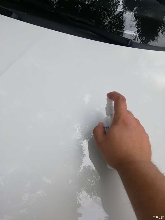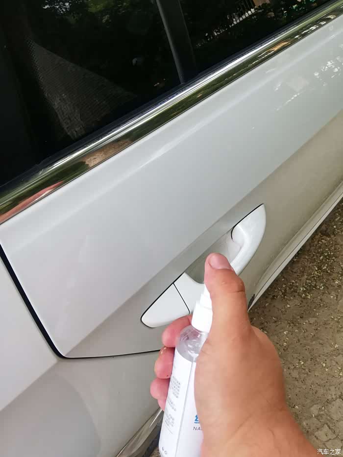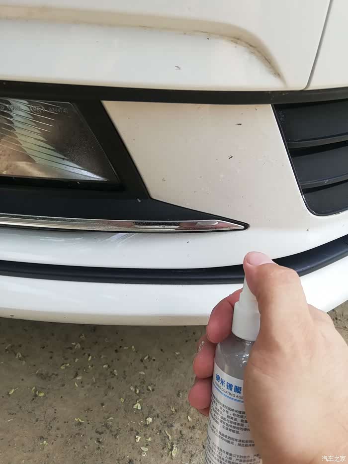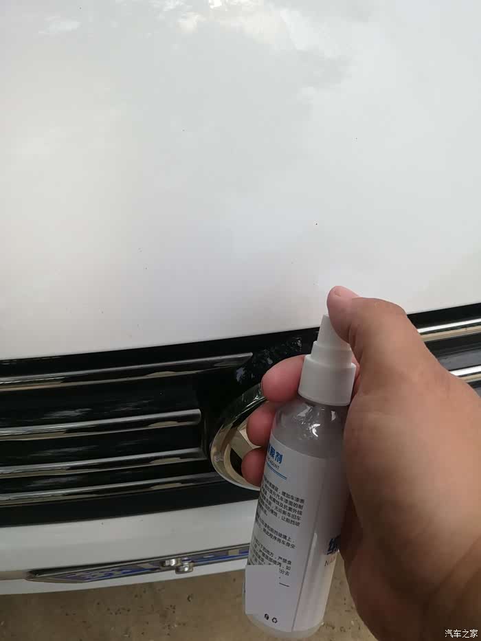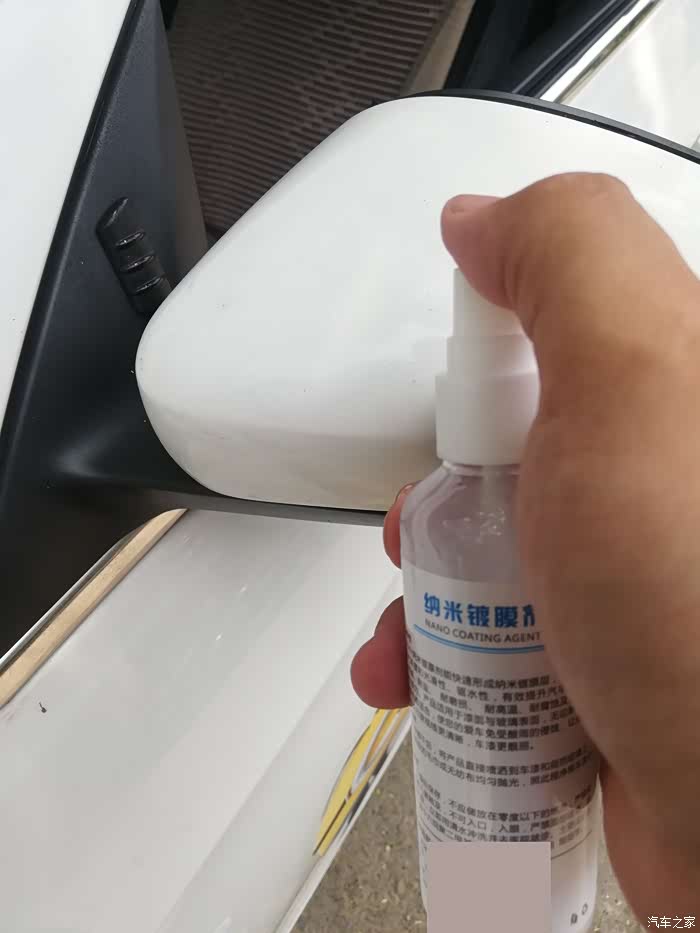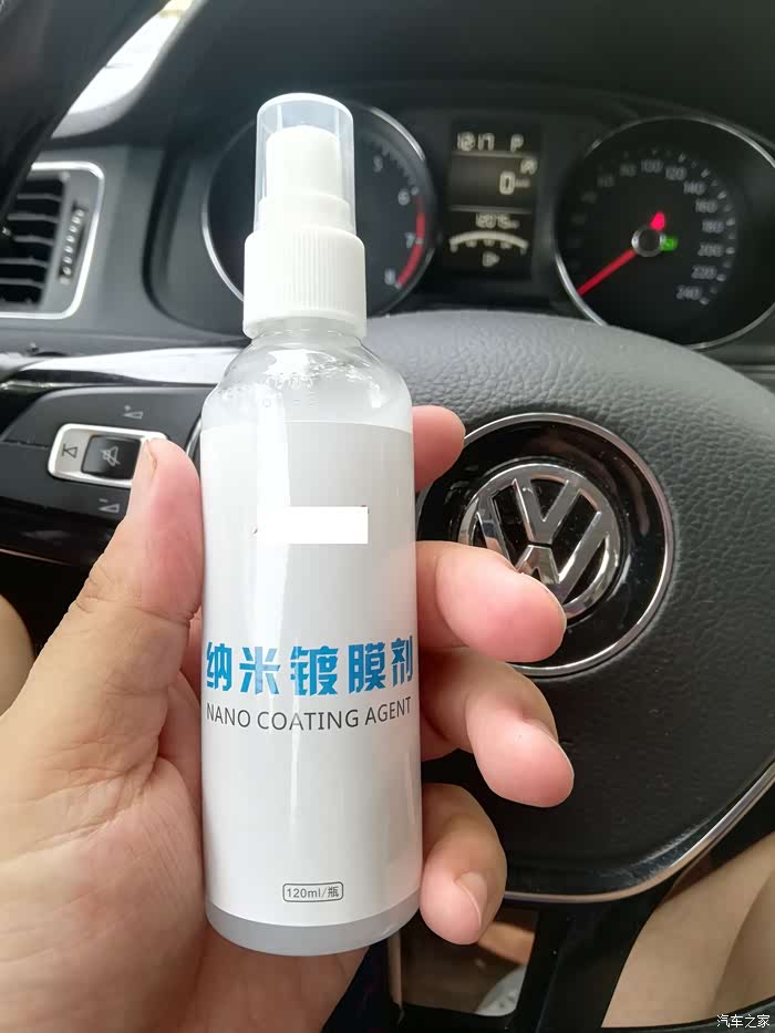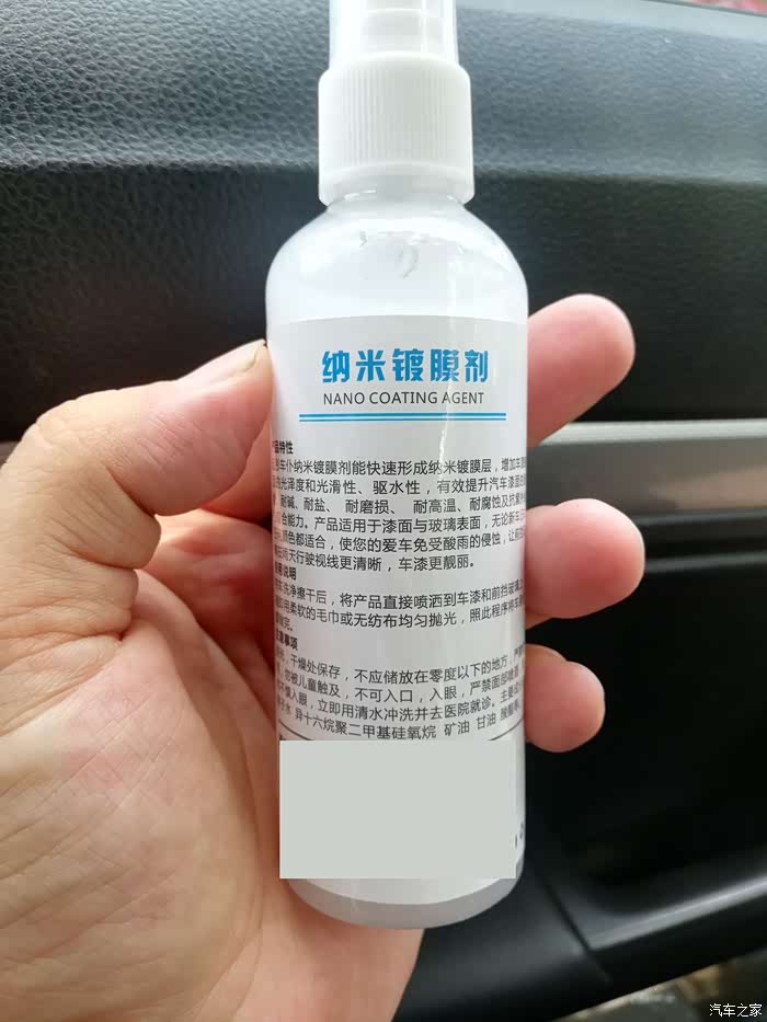 拿出纳米镀膜剂(品牌打码),也是一个小神器了,白色的瓶子,一小瓶可以喷整车了。