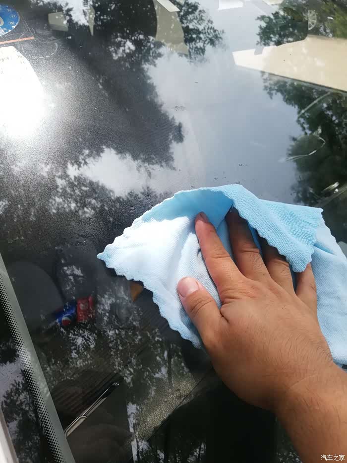 这个车窗也给喷了和擦了,后来发现是错误的。前挡风玻璃喷完之后,形成了一层膜,雨刮刮起了有咯吱咯吱的声音。