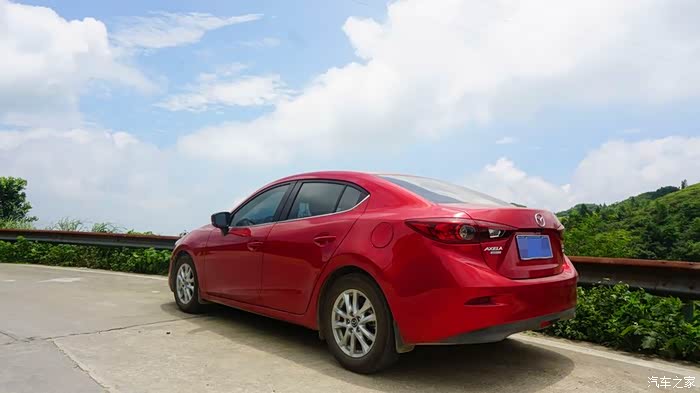 湿滑路面应对过弯,昂克赛拉也表现不错。特别是弯道性能上,这辆车本身调教的都不错,东瀛宝马不是盖的,再搭配上胎肩和胎冠都有很深沟壑的安乘轮,能明显感觉到来自轮胎的横向支撑和拉拽,湿地中稳稳的过弯:稳!
