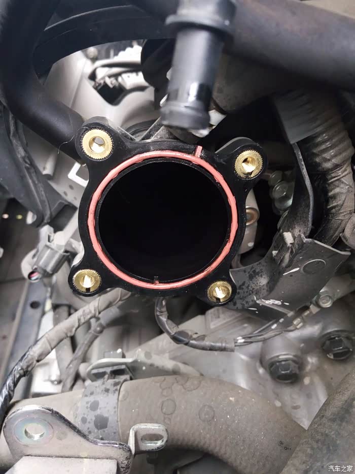 这个就是节气门,这一面看着不是太脏,不过已经关闭的不是很严了。