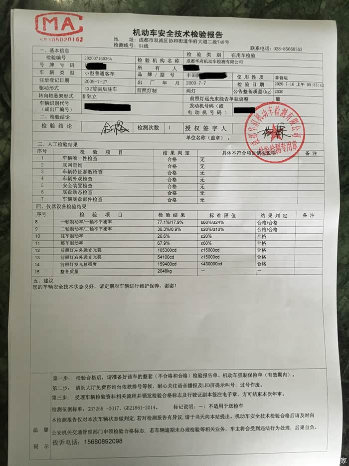 尾气测完就去大厅等报告,然后行驶证上打印新的年检到期时间