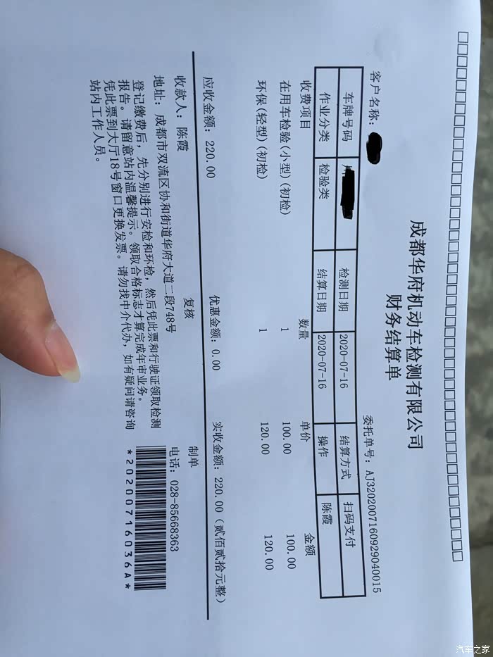 年检一共花费220元,检测站一次性收取。要准备的材料非常简单,身份证、行驶证、交强险保单、三脚架(应急显示牌),到了检测站以后就问年检在哪里排队,然后跟着流水线走就完事了,不用做什么攻略也不用找黄牛多花钱,早一点去排队整个过程大半个小时就能搞定。