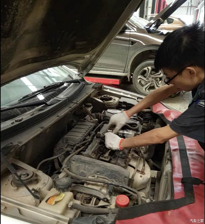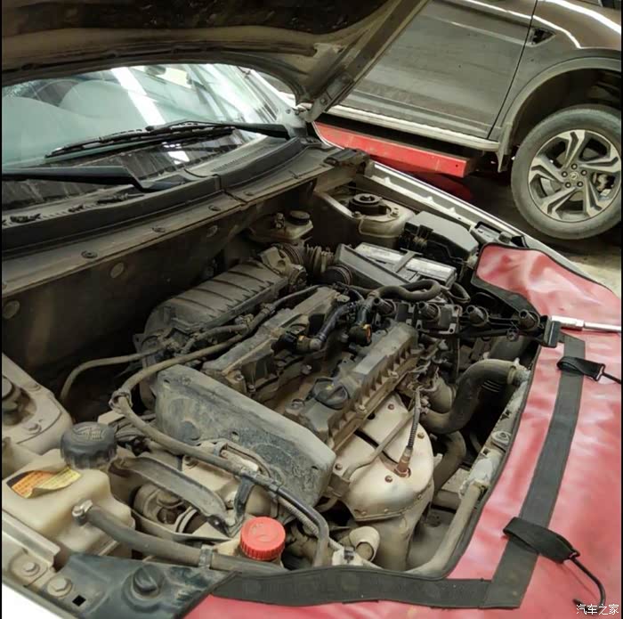 跟人们吃饭一样,先围个垫子,4S店还是挺细心的。不过我的发动机里面看着着实是有点脏了。