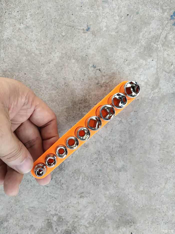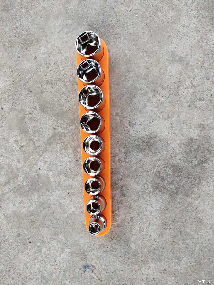 9件套筒,表面镀铬,9种规格,平时可能用得比较少。