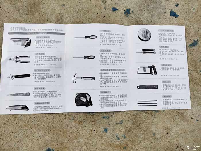 纸上箱标注清楚工具套装所包含的36件工具